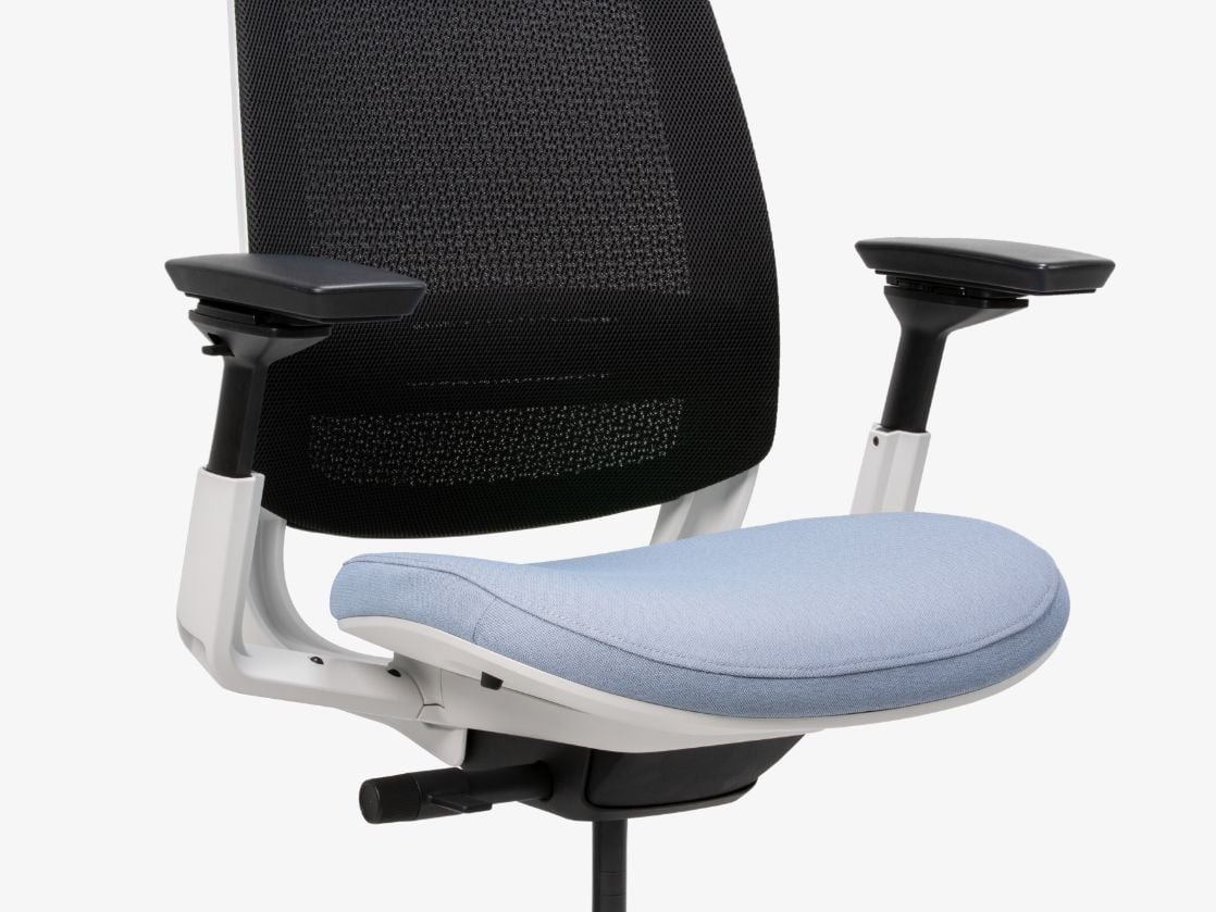 SteelcaseのSeries 2はシンクロナイズドチルト機構を搭載しております。リクライニング時に座面と背もたれが連動し、チェアの内側で身体を支え続けます。足はしっかりと床についた状態でリクライニングをしても作業に最適な距離を保ち続けます。