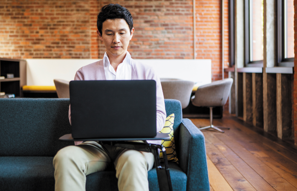 近年人々は、働く場所を自由に選べるという部分に価値観を置いています。ソファ、カフェ、オフィススペース、リビング、いかなる場所でもリラックスした姿勢で仕事ができるようにフリースタンドがユーザーとパソコンをしっかり支えてくれます。