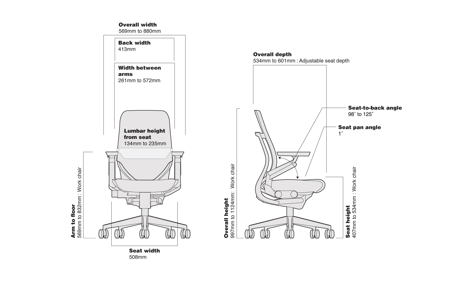 Gestureの座面と背もたれが連動する事で動作が一体となり、身体の動きに追従する事で、長時間の作業も快適です。