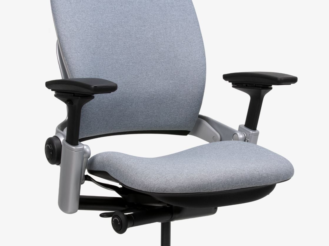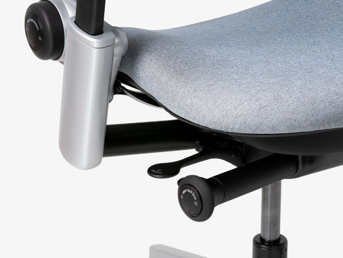 Leapは身体にフィットするよう隅々まで正確に調整可能。操作はとても直感的です。座面はリクライニングに合わせて前後にスライドし、作業への集中力が途切れません。